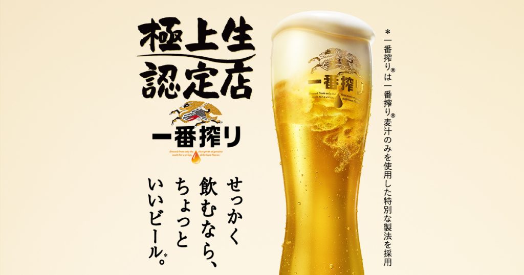 キリンは「一番搾り 極上生認定店」という制度を展開。毎日の洗浄、樽の鮮度、ガス圧など、日常の管理が徹底されているかを基準としています。看板商品である「一番搾り」の品質を保証する制度として、多くの店舗に広がっています。